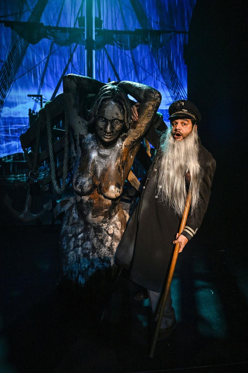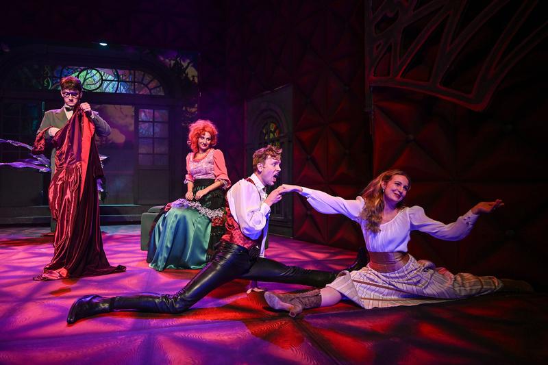 The famous story of the bloodthirsty monster is, however, told at breakneck pace and with incredibly witty hyperbole, lightness of touch, irony and humour. All the characters in the story are played by just five actors who, with the help of minimal external effects, and with even greater emphasis on precise comic interplay and an acting balancing act, do not let the audience draw breathe and pile one joke on top of another. Wordplay, physical acting verging on slapstick, disguises and a high-spirited take on a famous tale tell the vampire story in a captivating manner that the audience is bound to love.