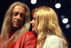 Shakespeare wäre nicht Shakespeare, wenn er den Schauspielern nicht herausragende Gelegenheiten geben würde, sich zu profilieren. Für Ladislav Kolář gehört der maliziöse Kardinal Wolsey sicherlich zu den Rollen seines Lebens – eine Verkörperung der Gefahr unter dem Mäntelchen der Schöntuerei und Frömmelei. Alena Antalová ist fraglos eine schwungvolle Königin Katharina, auch wenn ihr historisches Vorbild offenbar mit weiblichen Reizen nicht so reich gesegnet war. Ein ganz neues Gesicht in der Titelrolle ist Jan Mazák, auch wenn er schon seit April letzten Jahres dem Ensemble angehört. Soweit ich mich nicht irre, stammt er aus Kroměříž, spielte in Ostrava, anschließend in Hradec Králové, und von dort ist er jetzt nach Mähren zurückgekehrt. Sein Heinrich VIII. wirkt schon auf den ersten Blick zivil, gegenwärtig. Während die überwiegende Mehrzahl der auftretenden Akteure Perücken trägt, verzichtet er darauf. Kurzgeschnittene, leicht angegraute Haare, zu einer Igelfrisur nach hinten gekämmt, kein Bart – auch dies ist ein Grund dafür, warum Mazák optisch aus der Inszenierung hervorsticht. An diesen Heinrich VIII. muß sich der Zuschauer also auch „etwas gewöhnen”, auf keinen Fall haben wir es hier mit einem bekannten Typus Werich oder Burton zu tun. Womit nicht gesagt sein soll, daß Mazák nicht überzeugend wirkt.