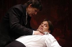 Černín stresses the grotesque features of the excellent and sharply ironic Gogol´s drama with a tragic point. Icharev, a refined trickster is tricked by primitive direct countrymen who work as a team. You know: the world goes where the strength pushes it.