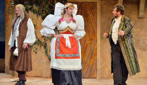 Italian commedia dell’arte has been one of the most popular theatrical genres since the 16th century. It’s a genre based on improvisation, exaggeration and various forms of craziness, full of jokes and gags made by a well-established set of standard characters – miserly old men, widows desperate for marriage, silly servants, young lovers, naïve young girls and confused scholars. In 1978 the respected theatre theoretician, critic and historian Jaroslav Vostrý wrote a comedy for the Činoherní klub (Drama Club) which pays respect to this genre. Of course, he was forbidden to engage in such activities due to political reasons so the play Three in the Family Way appeared on stage accredited to the author Jiří Menzel, who directed it and also adapted it for film in 1981. It became one of the Činoherní klub’s most famous productions, remaining on the repertoire for almost 9 years.