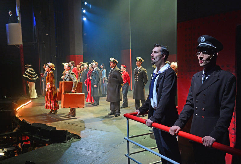(…) Hlavní síla celého kusu stojí na strhující hudbě (orchestr řídil Dan Kalousek), ale také na působivých sborových výstupech (sbormistr Karel Škarka). Čísla, v nichž se blýsknou sólisté, samozřejmě nechybí. Nejsilnější dojmy však myslím vzbuzují pasažéři: chór, množství různorodých lidských jedinců, na rozdíl od diváka při společném nevědomí o blížícím se fatálním konci. Pestré, přesně rozvrstvené společenství na zdánlivě nedobytném plavidle. Někteří s nadějí a touhou po lepším životě, jiní pro naplnění potřeby společenské povinnosti či výlučnosti, z marnivé potřeby „být u toho“. Brněnská inscenace vložila do hry prakticky všechny dostupné prostředky a síly. (…) Hlavní role hra nemá. (…) Je tu však přece jen trio těch z „kapitánského můstku“. Kapitán v podání Zdeňka Junáka, s rozhodným a sporým projevem, chlap na svém místě. Podvolí se však urputnému naléhání majitele lodi ke zvýšení rychlosti. Když je zřejmé, že plavba, která měla být odchodnou po jeho celoživotní službě, je cestou poslední a definitivní, zachová se, jak ke kapitánovi patří. Majitele lodi ovládaného mocí a jí blízké ješitnosti přesně vystihl Petr Štěpán. Poslední z trojice: konstruktér lodi, který první ví, že zkáza je neodvratná, a ví také proč. Petr Gazdík vnitřní rozkolísanost postavy vystihl i dramatickým pěveckým výrazem. Velmi silný moment celého děje přináší vypjatá vokální konfrontace, ostrý spor o podíl viny mezi těmito třemi. (…)