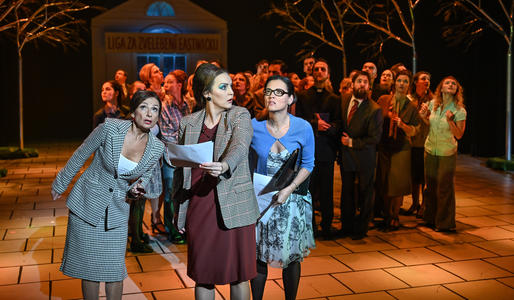 Roli Sukie s Radkou Coufalovou z původního castu nově nastudovala Andrea Zelová, o roli Alexandry se podělila někdejší Ivana Vaňková se Svetlanou Janotovou a postavu Jane s původně obsazenou Johanou Gazdíkovou hraje novicka Tereza Navrátilová. Coufalová strhne publikum k otevřenému potlesku v perfektně udělaném songu Words, words, words, který je vlastně bravurně zazpívanou ekvilibristickou a pěveckým žonglováním se slovy. Nebylo by fér porovnávat původní obsazením s tím novým. Faktem ale je, že ono „starší trio“ v muzikálu hraje zejména o ženách středního věku, které jsou schopné a umí najít ztracené sebevědomí, stejně jako nakažlivou a bezuzdnou vášeň k životu a jeho pozemským, tělesným radostem. Mladší trojice zase kouzelně v muzikálu traktuje ono hořlavé téma: mladá žena bez sebejistoty, vědomá si životních traumat a trablů lehce, vyhladověle vzplane v kontaktu s charismatickým mužem, u kterého o věk zas až tolik nejde. Viděl jsem obě verze a bavilo mne pozorovat onen naznačený rozdíl ve výkladu, v tom jak herečky ze svých interpretací vyplavují témata blízká jejich reálnému věku. Pěvecká bravura samozřejmě nechybí žádné z nich.